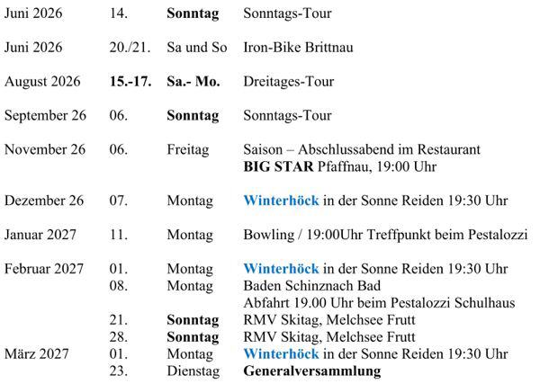 Jahresprogramm 2026 RMV Reiden